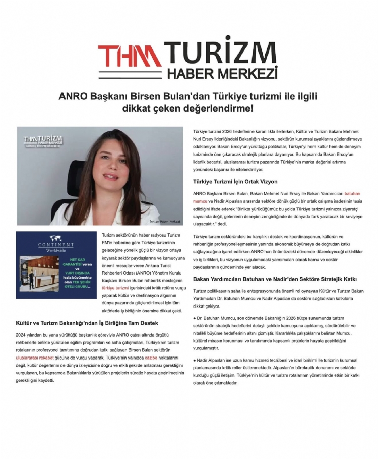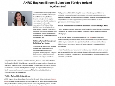 > ANRO Başkanımız Sn.Birsen BULAN’dan Türkiye turizmine dair basında yer alan açıklamaları