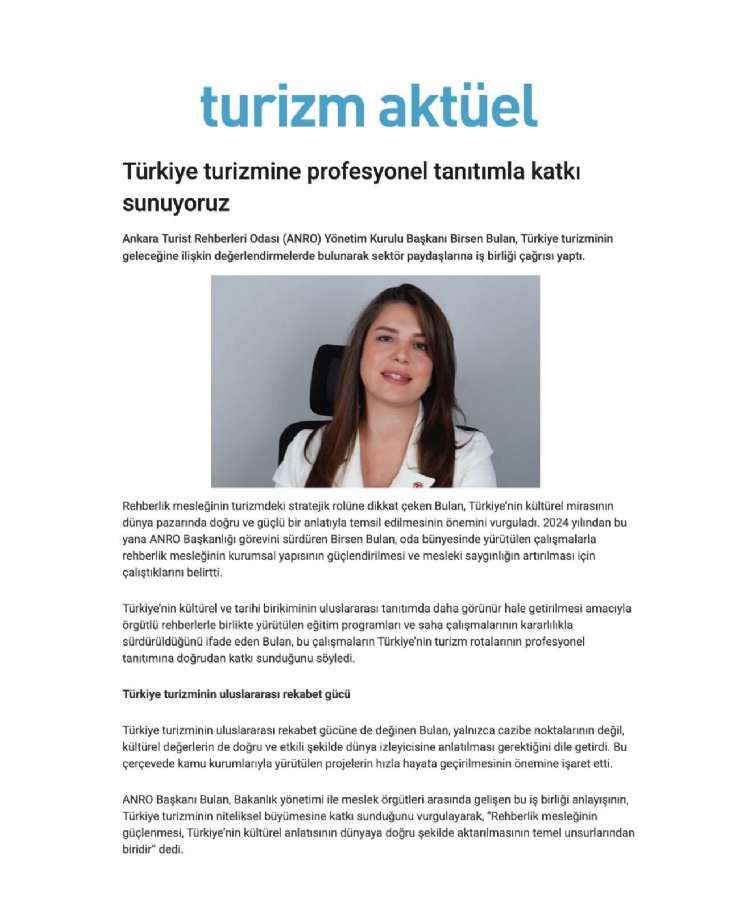 ANRO Başkanımız Sn.Birsen BULAN’dan Türkiye turizmine dair basında yer alan açıklamaları